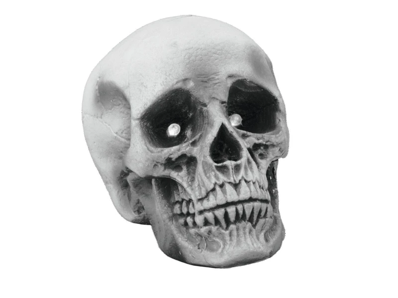Deze doodshoofd kan je ter decoratie neer gezet worden hij heeft knipperde (rode) ogen..
